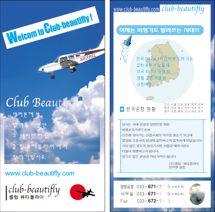 재미 없어요. Creative를 발휘해서 만들어야죠. 이건 아니겠지만... 예를 들어 펭귄 뽀로로 처럼, 비행 모자 쓴 강아지가 (턱시도 차림? - 옆에 신부 강아지?^^) 비행기를 조종하는 장면...(사진 합성도 좋고...) 여기에 카피를 "뷰티플라이 개 3년" 이런 식으로 재미있게 만들어 보세요. 있는 내용 보기좋게 나열만 잘 한다고 다 되는게 아니랍니다. emoticon_002